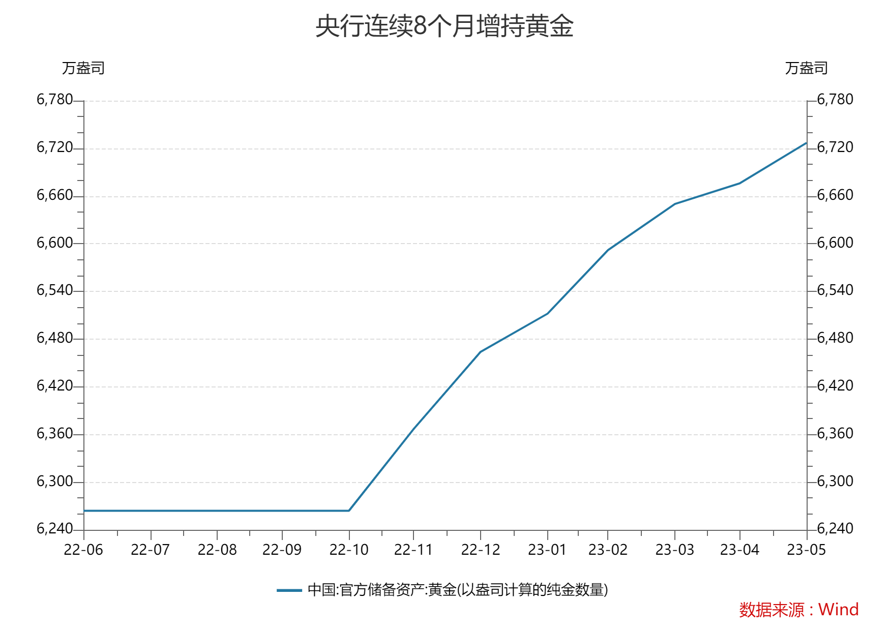 值得注意的是,外汇局官方储备资产表显示,6月黄金储备录得6795万盎司,较前值上行68万盎司,为连续第八个月增加,且月度增幅创近四个月新高。