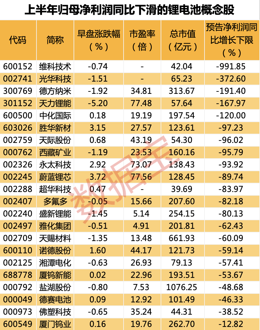 由于碳酸锂上半年价格剧烈波动,锂电池上市公司上半年盈利普遍下滑。