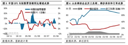 从供应端来看,当前棉纺企业生产整体正常,但随着需求回落,企业棉纱库存逐渐累积,8月份棉纺企业开工负荷或将继续下降,9-10月份随着旺季到来或将提高。