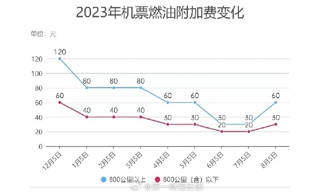 根据去哪儿提供的数据,自2023年8月5日(出票日期)起,成人旅客800公里(含)以下航线每位旅客收取30元燃油附加费,800公里以上航线每位旅客收取60元燃油附加费。