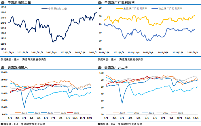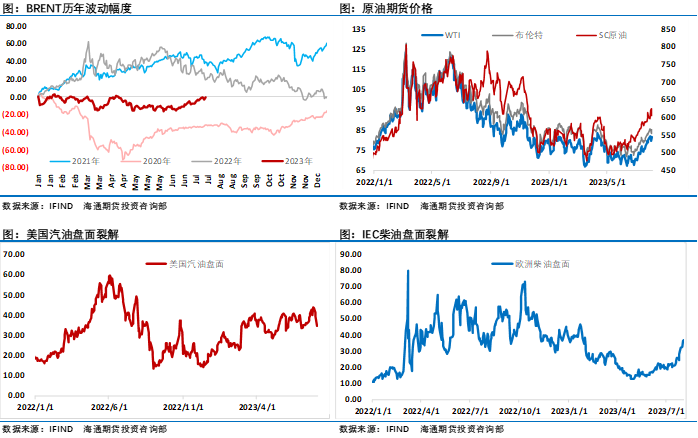 另外,本周的另一引发市场关注的宏观事件是惠誉本周宣布将美国信用评级从AAA的最高等级降至AA+,引发白宫不满。惠誉成为继标普之后第二家摘掉美国AAA评级的主要评级机构。惠誉下调美国政府的最高信用评级的原因是财政担忧、美国治理恶化以及政治两极分化,令人对美国政府解决财政和债务问题的能力信心不足。不过,从市场反应看,降评的影响有限。中国方面则在过去一周持续推出了系列激发经济活力、恢复并扩大消费、提振市场信心的措施,这有助于提振投资者对需求的预期。总体来看,近期宏观环境对油价较为友善,这也在一定程度上让油价延续了强势表现。