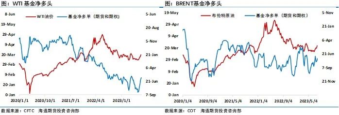 上半年因为投资者对全球宏观经济下行压力的担忧,信心不断消耗。欧佩克+方面早早开启了主动预期管理以维持原油市场平衡,尤其是沙特非常有魄力地带领欧佩克组织4月、6月进行减产操作之后,自愿再减产100万桶/日以稳定市场,俄罗斯也在随后配合减少出口,这样的行动给市场注入了强大的信心,油价走高的同时,原油市场投机净多头寸持续回升接近年内高位,意味着投资者追涨意愿明显提升,这是对原油市场供需局面吃紧引发油价上涨的直接反馈。