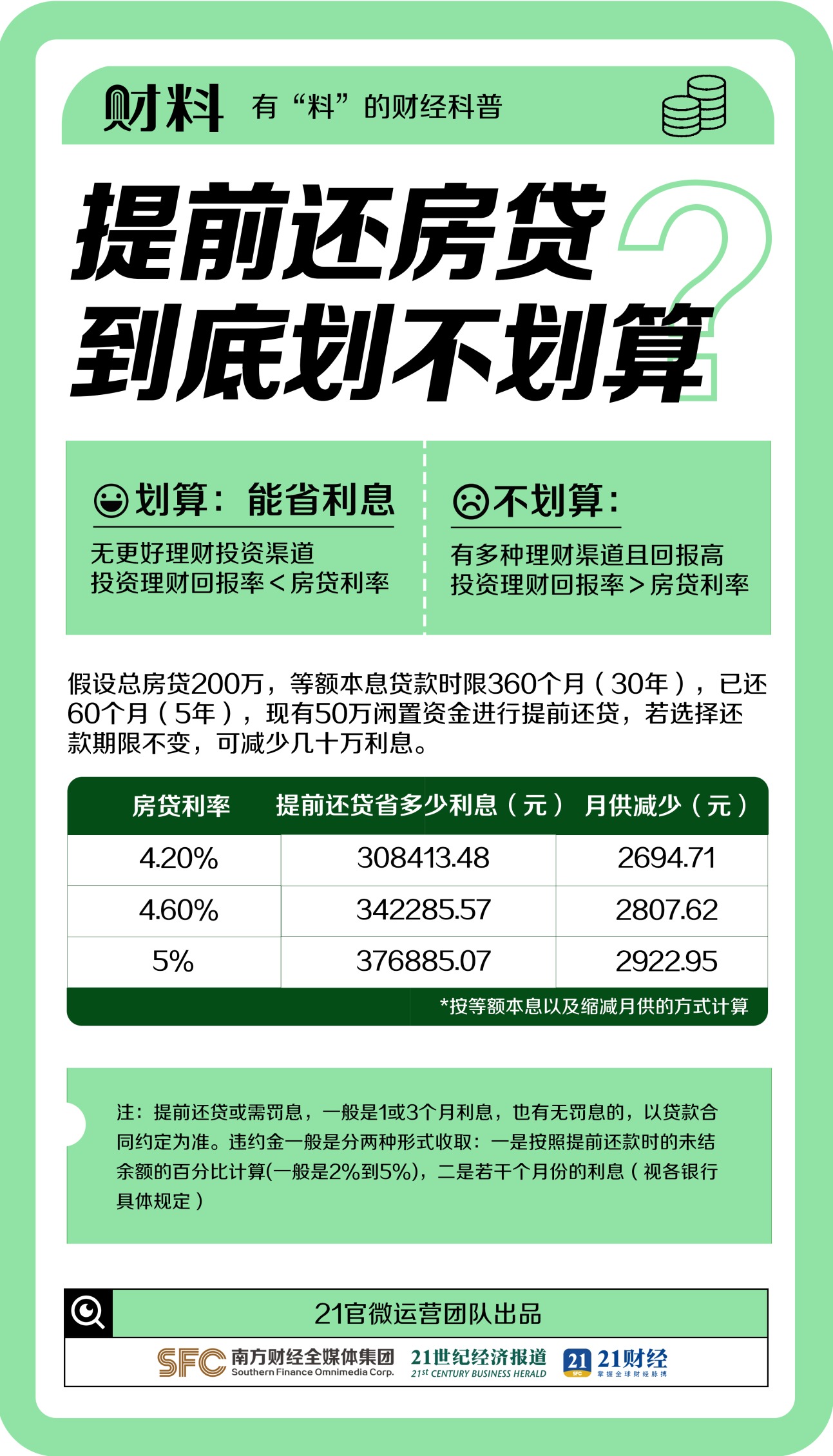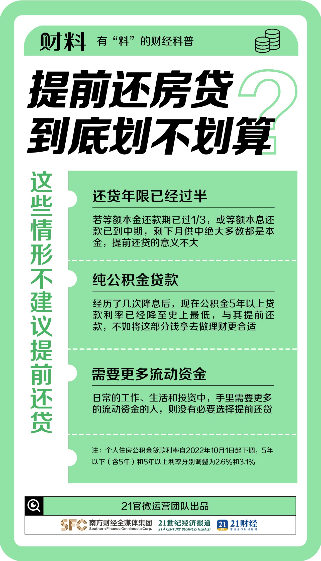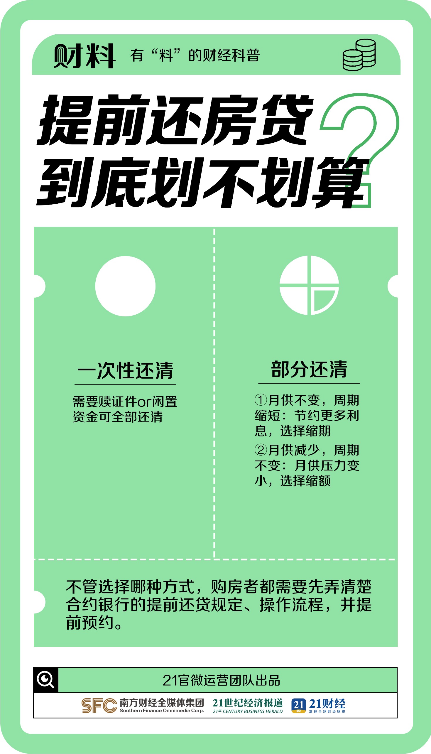 2023年来“提前还房贷”屡掀高潮,近日央行再提降低存量房贷利率,提前还贷是否真的划算呢?提前怎么还房贷最划算?提前多久最划算?哪些人适合提前还贷?缩期、缩额哪个还款方式更为合适?本期财料为你整理“提前还贷”的极简攻略!