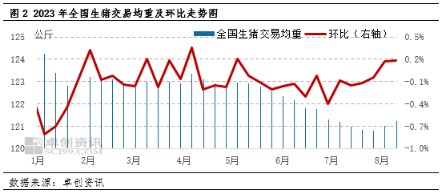 8月中上旬猪价虽处于阶段性高位,但当下正处于供需博弈的局面,价格窄幅震荡为主。供应方面,随着前期养殖端积极出栏,进入8月局部地区出现“断栏”;同时大猪价格支撑下散户抗价意向增强,二次育肥户截留部分猪源,共同导致国内生猪供应愈发紧张。数据显示,8月国内生猪交易均重止跌反弹,第二周交易均重为121.22公斤,较月初上涨0.35%。
