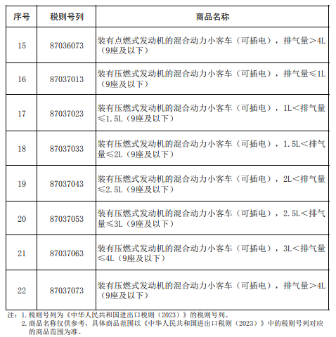 一、进口半挂车用的公路牵引车、机坪客车、全地形车、9座及以下混合动力小客车(可插电)等22项商品(见附件),按照本通知和《财政部海关总署税务总局关于海南自由贸易港交通工具及游艇“零关税”政策的通知》(财关税〔2020〕54号)有关规定,免征进口关税、进口环节增值税和消费税。