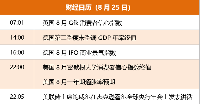 亚太股市:8月24日,香港恒生指数收涨2.05%,报18212.17点;恒生科技指数收涨3.72%,报4158.02点。日经225指数收涨0.72%,报32275.00点。韩国KOSPI指数收涨1.31%,报2538.31点。