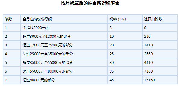 一、居民个人取得全年一次性奖金,符合《国家税务总局关于调整个人取得全年一次性奖金等计算征收个人所得税方法问题的通知》(国税发〔2005〕9号)规定的,不并入当年综合所得,以全年一次性奖金收入除以12个月得到的数额,按照本公告所附按月换算后的综合所得税率表,确定适用税率和速算扣除数,单独计算纳税。计算公式为:
