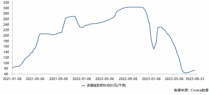 iChoice数据显示,今年以来多晶硅价格持续下滑,最新价格仅为高点的约1/4。