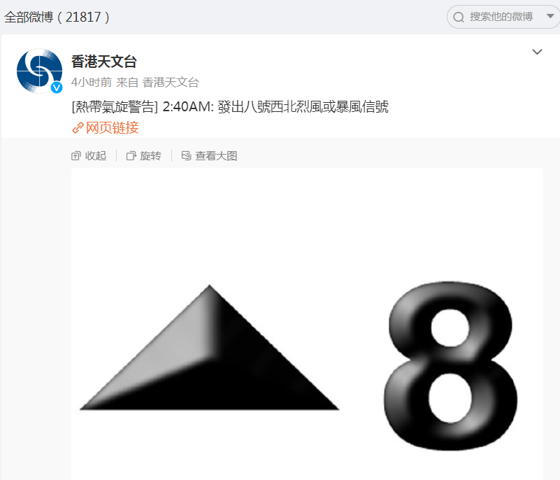 据香港天文台网站消息,香港天文台于9月1日2:40发出八号西北烈风或暴风信号热带气旋警告,上午7时,超强台风苏拉集结在香港东南偏东方向。香港天文台表示,苏拉的眼壁完整,环流紧密。随著苏拉继续靠近,今日稍后天气将急速转坏,有狂风大骤雨,风势猛烈。八号烈风或暴风信号会在今日大部分时间维持。