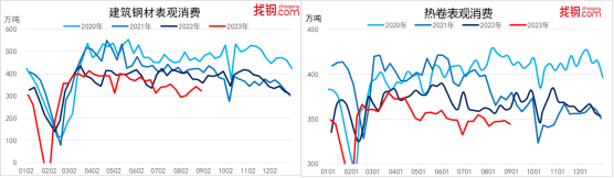 从钢材表观消费来看,截至8月30日,找钢网跟踪调研的建筑钢材表观消费量322.58万吨,月环比增加27.41万吨,环比增幅9.3%;热轧板卷表观消费量344.52万吨,月环比增加2.42万吨,环比增幅0.7%。