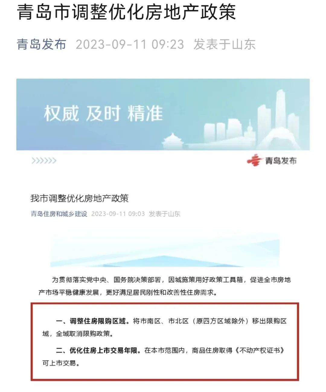 紧随济南之后,青岛也全面取消限购。
