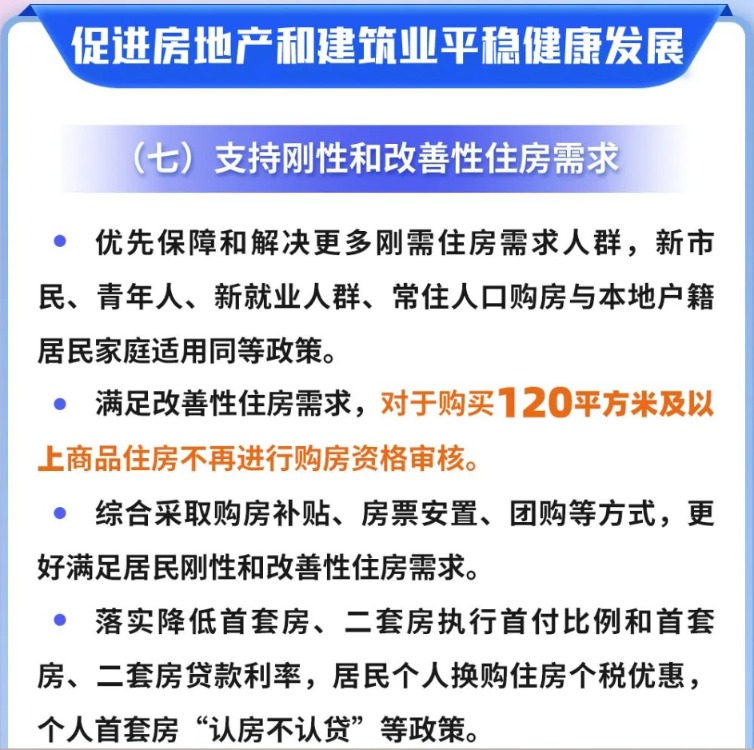 值得一提的是,9月11日上午,苏州召开新闻发布会,对该市于9月8日印发的《关于促进全市经济持续回升向好的若于政策措施》进行解读。其中提到,为满足改善性住房需求,对于购买120平方米及以上商品住房不再进行购房资格审核,以保障和解决更多刚性住房需求人群,新市民、青年人、新就业人群、常住人口等适用同等政策。