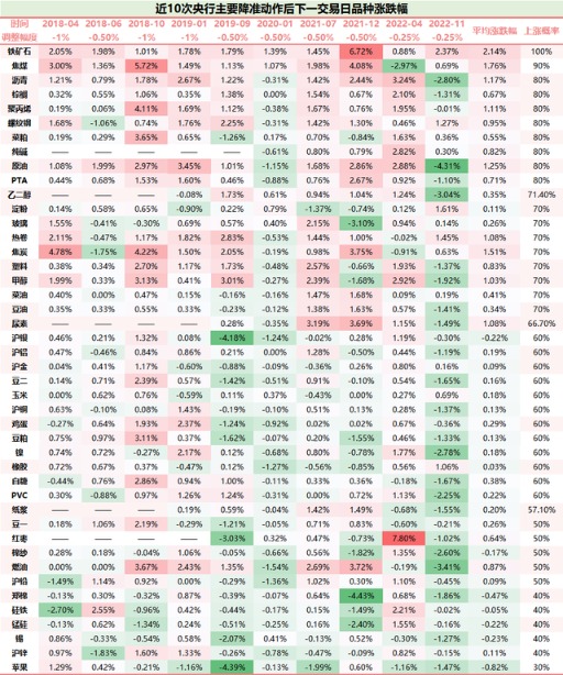 商品市场方面,市场分析认为,大宗商品尤其是有色金属价格,主要受两个因素驱动,一个是实体经济的需求端,另一个则是对于流动性的预期。降准释放流动性对于大宗商品尤其是有色金属而言,存在波段脉冲机会。从历次降准的情形看,铁矿石、焦煤、原油、螺纹钢等品种短期上涨概率较高。