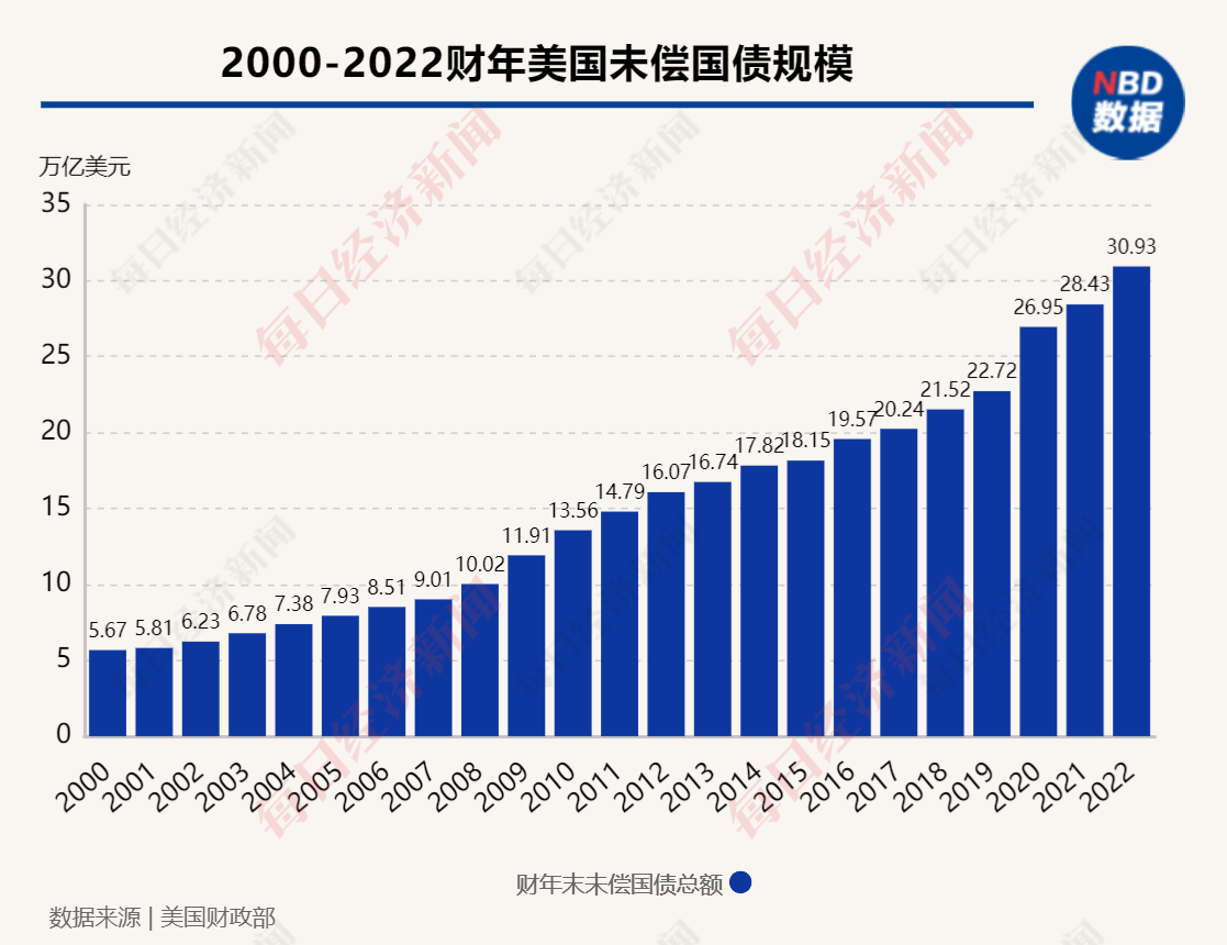 “美国债务的增加是因为政府此前借了大量的钱来应对新冠大流行。未来美国债务还将继续增长,因为美国社会正在老龄化,而当前的税收结构无法创造足够多的财政收入来支撑养老金和医疗体系。” 布鲁金斯学会的哈钦斯财政和货币政策中心主任戴维·韦塞尔(David Wessel)对《每日经济新闻》记者表示。“此外,美国政府借贷的规模很大,利息支出在联邦政府预算中所占份额一直就在增长,假如当前的高利率继续维持,这一份额将继续增长。”