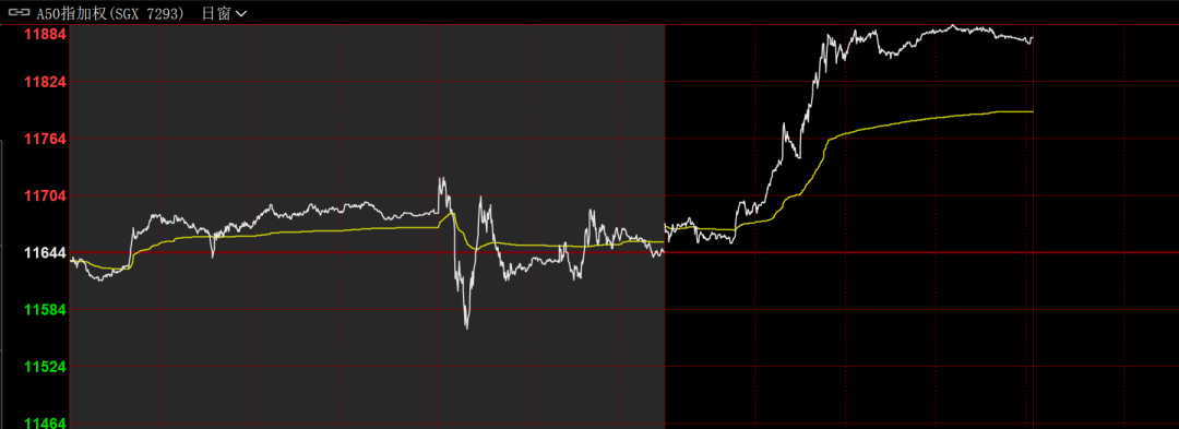 受此消息影响,富时A50期指连续夜盘收涨1.94%,报11869.000点。美股三大指数集体收涨,道指涨0.62%,纳指涨0.93%,标普500指数涨0.73%,热门中概股普涨,纳斯达克中国金龙指数涨3.98%。