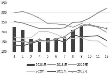 11月,棕榈油将进入减产周期,产量将高位回落。不过,四季度厄尔尼诺等级转强的概率增大,这将给东南亚带来少雨天气,对棕榈油生长有明显的损伤。近期,马来西亚半岛南端已经出现干旱迹象,这将影响9—10个月后的棕榈油产量,对近期的产量并没有明显影响,反而让雨季的棕榈油产量较往年同期偏高。目前,全球处于中等厄尔尼诺气候,强度随着时间推移不断加深。据NOAA预测,厄尔尼诺持续到2024年1—3月的概率有95%,有望达到强厄尔尼诺级别。另外,棕榈油出口前景同样不佳,印度植物油总库存高企,抑制采购积极性,且伴随着豆油进口利润窗口打开,国际豆油和棕榈油价差收缩令棕榈油的性价比优势下降,预计印度增加豆油进口,令后期马来西亚棕榈油出口面临转弱压力,马来西亚棕榈油库存高企或延续。