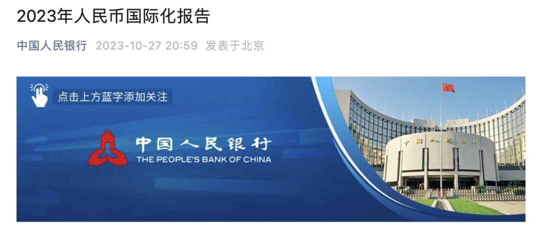10月27日,人民银行发布2023年人民币国际化报告(下称报告)。报告指出,2022年以来,人民币国际化稳中有进,呈现一系列新进展、新变化。跨境人民币业务服务实体经济能力增强,人民币融资货币功能提升,离岸人民币市场交易更加活跃。