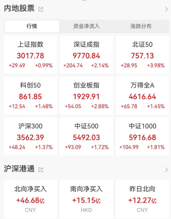 两市共4049只个股上涨,1130只个股下跌,北向资金净买入近47亿元。私募半夏李蓓称:聪明的外资对冲基金已经开始入场了。