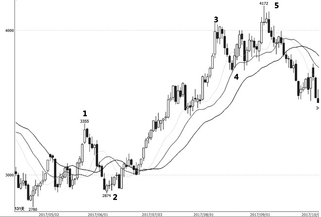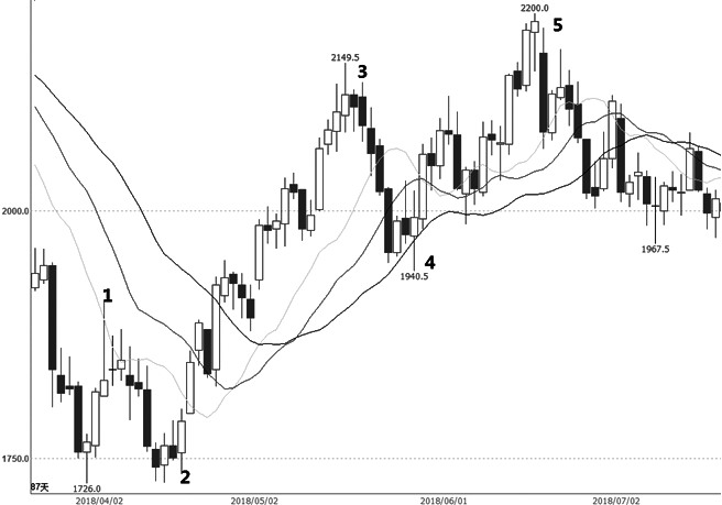 运用到期货交易上就是了解期货市场的本质,依据期货市场自身规律及走势结构,有预见性地把握趋势进行交易,这是一种独特的智慧体现。比如在行情走势中,五浪结构走完必然是A、B、C三波调整,因为“物极必反”。如果老跟着追涨杀跌,结果不是追不到,就是追到天花板上。睿智的交易者会反其道而行之,“其用适其反”就是先在必经之路上等着,就像球场上的“站位”或者在战场上占据有利地形,等它回来了,就一举成擒。
