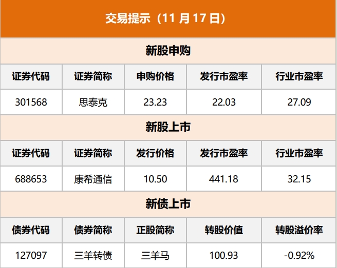 龙虎榜:11月16日,日内上榜龙虎榜个股中,资金净流入最多的是众合科技,为1.54亿元。机构参与龙虎榜中个券共涉及25只(1只可转债),其中6股被机构净买入,沃格光电被买入最多,为2837.2万元。另外19只个券(1只可转债)被机构就净卖出,至正股份被卖出最多,为1.32亿元。