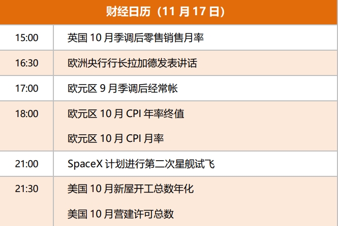 亚太股市:11月16日,香港恒生指数收跌1.36%,报17832.82点;恒生科技指数收跌1.85%,报4049.72点。日经225指数收跌0.35%,报33401.50点。韩国KOSPI指数收涨0.04%,报2486.78点。
