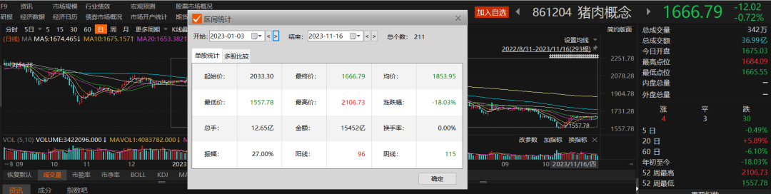 A股方面,猪肉概念股板块也持续下跌。东方财富Chocie数据显示,猪肉概念板块从年初至今已累计下跌18.03%。
