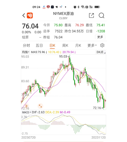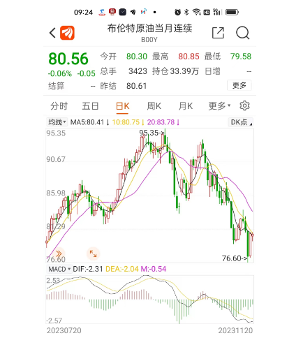 实际上,11月7日国内油价“三连降”后,国际油价就持续震荡走低,其中11月7日当天,纽约、布伦特原油期货就分别跌了4.57%和4.43%。11月16日,纽约原油期货最低跌至72.16美元/桶,与11月6日的收盘价相比,最大跌幅超过10%;布伦特原油期货最低也跌破80美元/桶大关,最大跌幅同样达到一成。