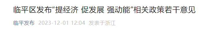 12月1日,据“临平发布”公众号消息,临平区发布“提经济促发展强动能”相关政策若干意见,从强化主导产业支撑引领、提升市场消费信心活力、促进房地产健康发展、打造更优营商环境等4方面提出16条措施。