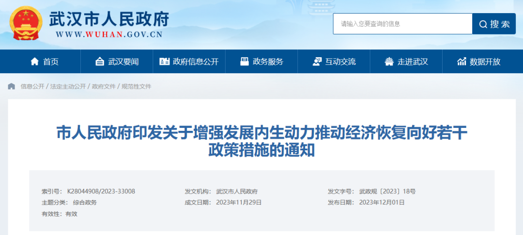 12月1日,武汉印发《关于增强发展内生动力推动经济恢复向好若干政策措施》,从八方面提出25条措施。