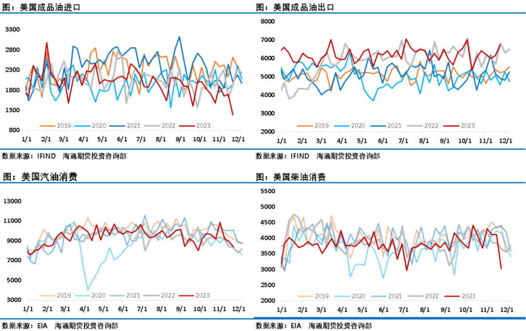通过跟踪各大机构平衡表可以看出,进入四季度后原油市场供需缺口明显收窄,EIA数据显示原油市场库存持续回升。而11月30日欧佩克+会议结束后油价从高点一度大跌超5%,显示了这次会议结果不能让人满意。三方机构睿咨得评价此次会议称,该集团主要成员国沙特阿拉伯喜忧参半:积极方面是会议结果显示欧佩克+成员国们各自宣布在明年一季度期间“自愿”减产220万桶/日,虽然局势混乱且内部分歧明显,在沙特努力下还是赢得了一些欧佩克+核心成员国的支持,新的临时自愿减产措施延长到2024年一季度以化解供应过剩压力,这缓解了一季度原油市场大幅过剩的利空。隐患是非洲成员国坚持自己市场份额的立场这一内部分歧没有解决,安哥拉石油部长拒绝了欧佩克分配的减产配额。该集团再次不得不依靠个别成员国的自愿减产以实施临时减产协议,而不是单方面商定在更广泛的欧佩克+集团削减,这绝对不是团体内部团结一致的好迹象。