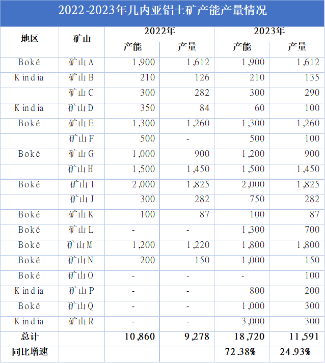 图2:2022-2023几内亚铝土矿产能产量(万吨) 数据源:SMM,中粮期货