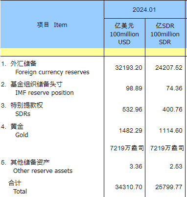 央行数据显示,中国1月外汇储备为32193.2亿美元,中国1月末黄金储备报7219万盎司,为连续15个月上升。