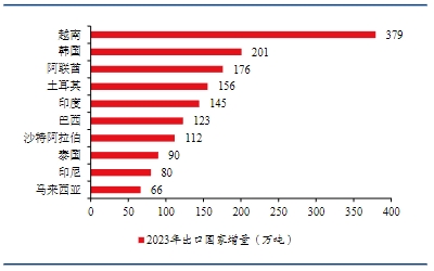 据华创证券统计,2023年钢材出口数量增量前十国家中,越南以379万吨位居第一,泰国、印尼、马来西亚三个东南亚国家也位居前十。