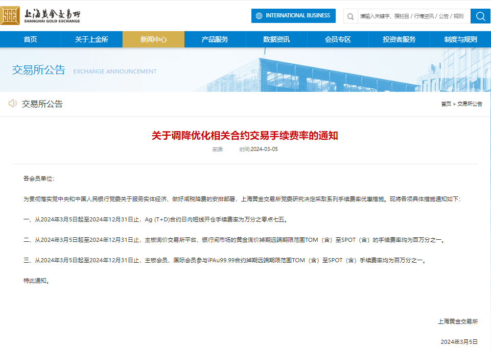 3月5日,上海黄金交易所(简称“上金所”)发布公告,宣布调降优化相关合约交易手续费,引起各方对贵金属市场的进一步关注。