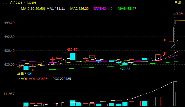 近期,由于美国经济数据走弱,美联储降息预期再次升温,美元指数连续振荡下跌。周二,受降息预期升温和美元指数走弱影响,叠加地缘局势提振避险情绪,贵金属大幅上涨,沪金主力合约盘中突破498元/克,创上市以来新高,沪银主力合约亦强势上涨并突破6100元/千克。周二夜盘,沪金主力合约延续涨势,盘中突破500元/克关口,最高触及502.56元/克,再创上市以来新高。