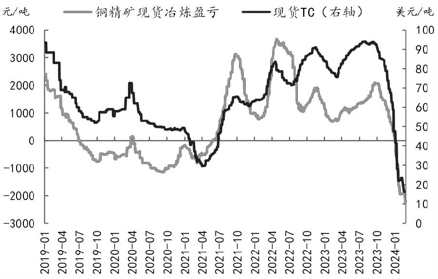 铜矿供应紧张且冶炼亏损较大,精铜产量将下滑。当前铜精矿现货加工费TC为16.41美元/吨,处于趋势下滑的态势,冶炼厂亏损超过2000元/吨。铜精矿供应紧张持续发酵,现货TC将继续走低。矿山和国内冶炼厂4月装期的铜精矿TC为10美元/吨,矿山和贸易商4月装期的铜精矿TC为个位数,这预示着冶炼亏损将继续扩大。冶炼端,部分冶炼厂因原料紧张面临生产压力,二季度冶炼厂进入集中检修期,预计精铜产量将持续下滑。