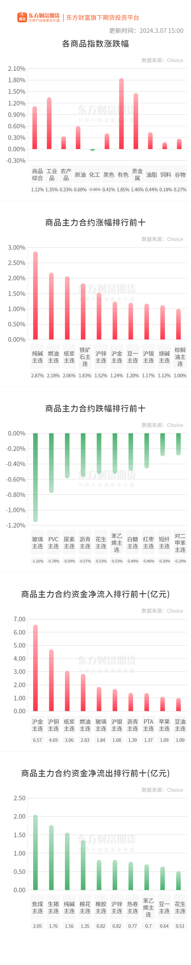 钢材:截至3月7日当周,螺纹钢产量连续两周增加,厂库连续第七周增加,社库连续第十三周增加,表需连续第三周增加。(Mysteel)