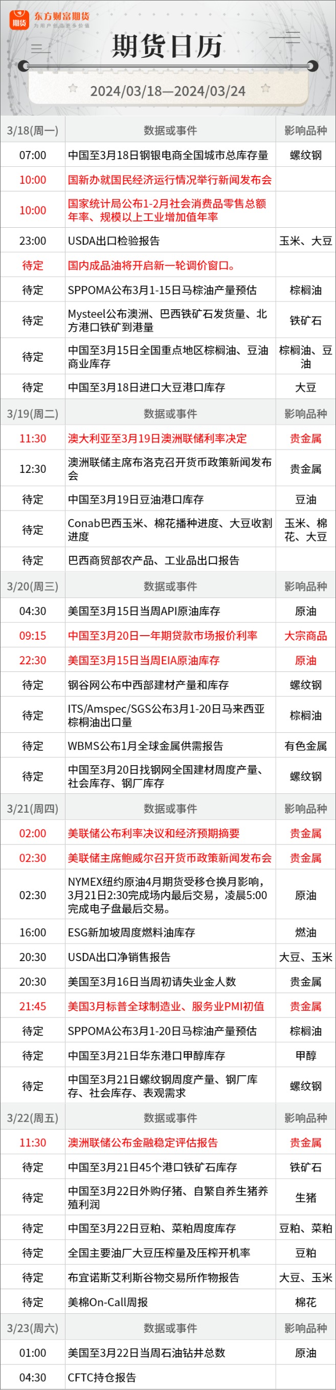 3月18日-3月24日待关注的重要数据与事件一览。点击查看>>