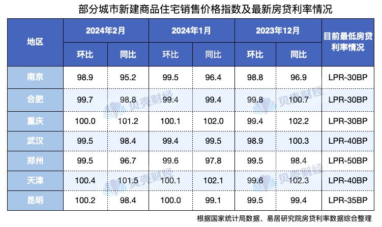 在这上述城市中,仅有天津、昆明地区新建商品住宅销售价格环比连续两个月上涨,但目前均未有房贷利率调整的消息出现。