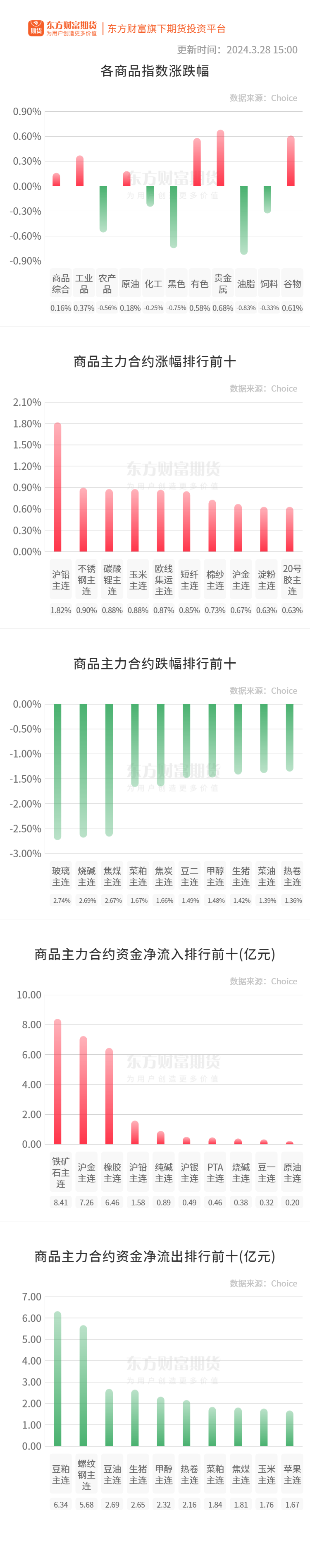 钢材:3月28日,中国钢铁工业协会发布倡议书。文中提到,期钢材市场波动明显,存在追涨杀跌现象,放大波动幅度,不利于钢材市场平稳运行。钢铁企业要理性看待市场波动,保持战略定力,反对低价倾销,抵制恶性竞争,共同营造公平、稳定的市场环境;提升风险防范意识,管控好销售渠道,严防低价抛售扰乱市场行为,避免市场踩踏,防止市场大起大落。(界面新闻)