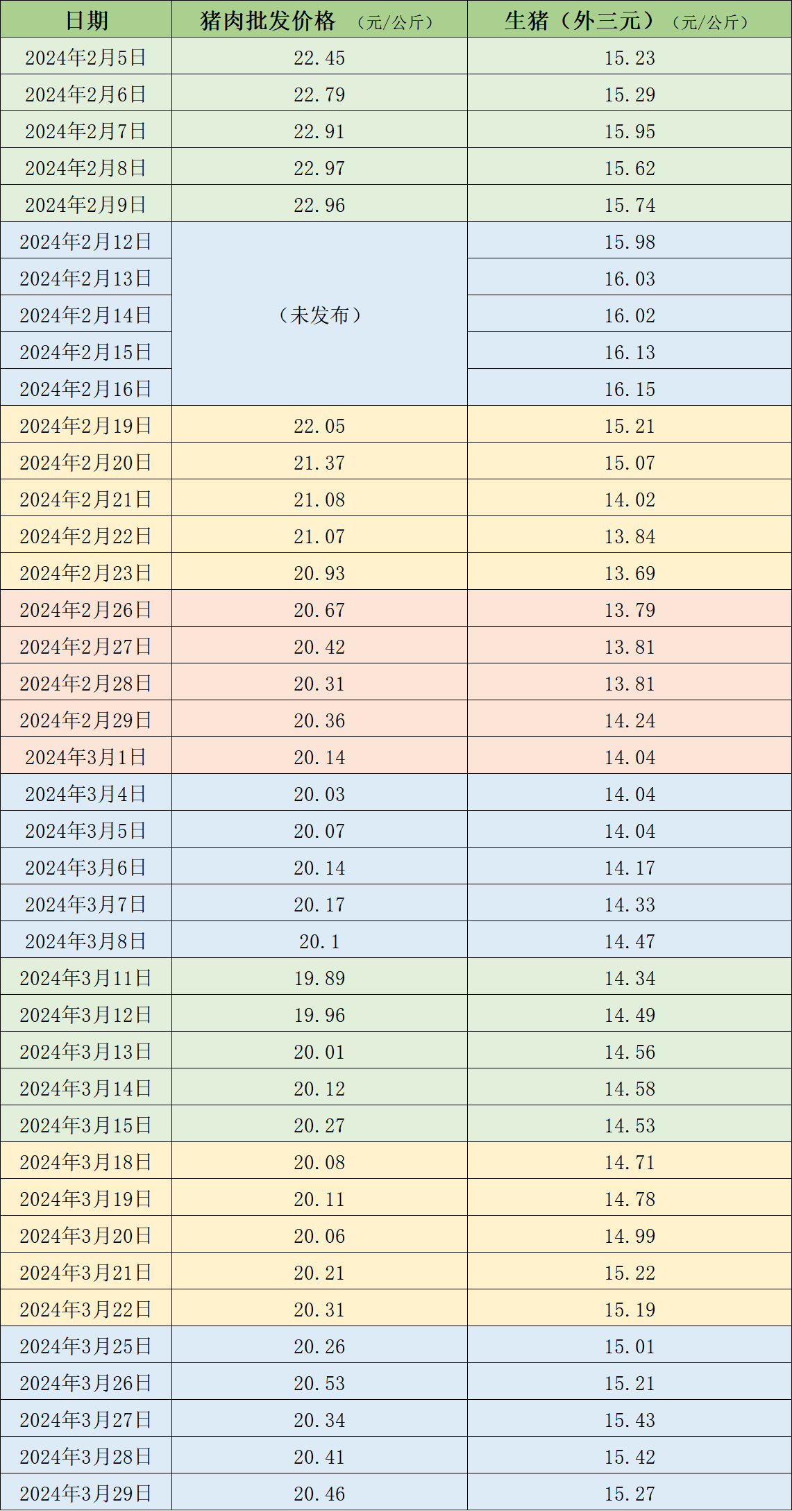 据农业农村部监测,3月29日,全国农产品批发市场猪肉平均价格为20.46元/公斤,与上周五(3月22日)的20.31元/公斤相比,上涨0.7%。本周的平均价格为20.4元/公斤,与上周20.15元/公斤的均价相比,上涨1.2%。