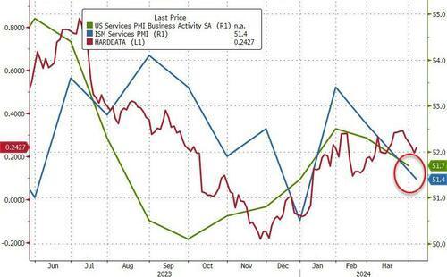 周三,ISM公布的数据显示,美国3月份ISM服务业PMI增长连续第二个月放缓,不及预期,其中备受关注的服务价格支付分项指数跌至四年来的最低,此外,供应商交货量和新订单也均减少。