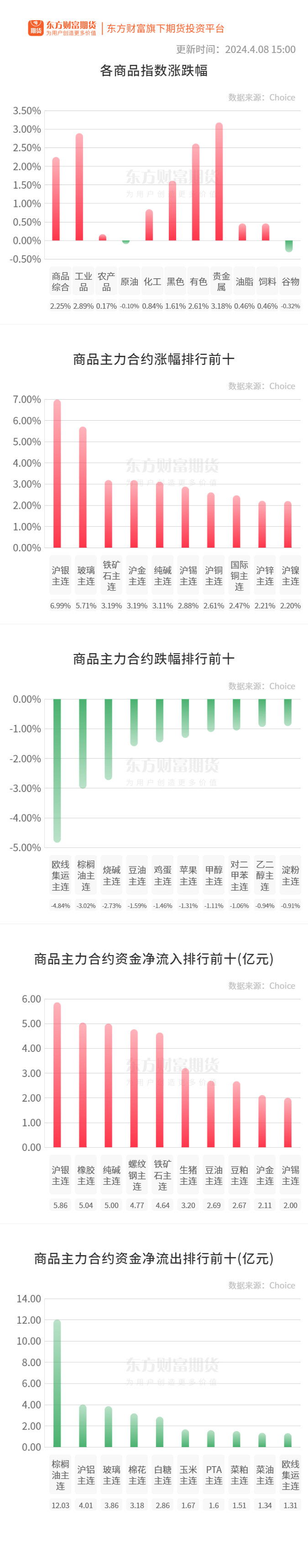 黄金:瑞银称鉴于黄金需求更加强、预计ETF购买的回升以及2250美元/盎司的年末目标已被超越,将所有预测上调250美元/盎司,预计金价将在6月达到2300美元/盎司,并在2024年底和2025年3月底达到2500美元/盎司。(财联社)