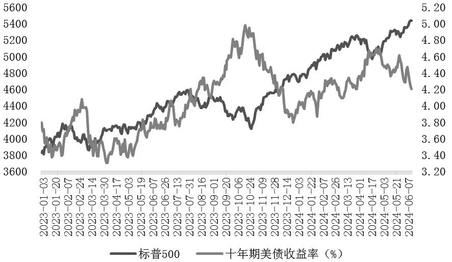 图为标普500与十年期美债收益率