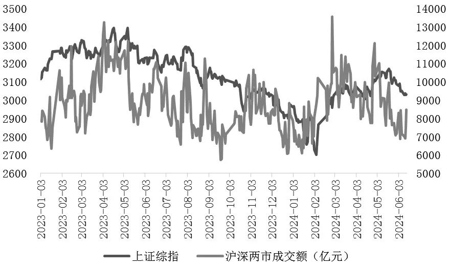 图为上证综指与沪深两市成交额