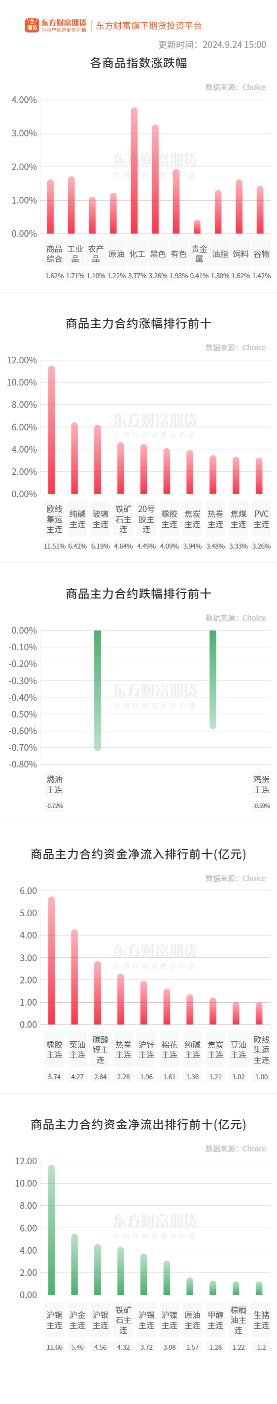 螺纹钢:9月24日,广西桂鑫钢铁建材价格二次上调20元,累计上调50元,调整后螺纹Ф18mmHRB400E出厂执行价3260元/吨;盘螺Ф8-10mmHRB400E出厂执行价3500元/吨;高线Ф8-10mmHPB300出厂执行价3500元/吨。(西本新干线)