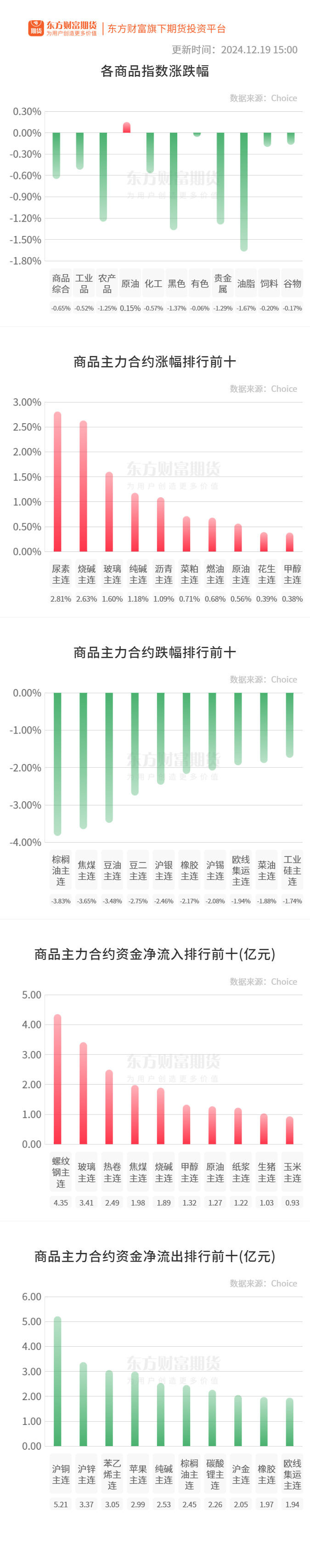 螺纹钢:据Mysteel,截至12月19日当周,螺纹钢产量由降转增,厂库连续第八周减少,社库连续第三周减少,表需连续第三周增加。①螺纹产量218.73万吨,较上周增加0.66万吨,增幅0.30%;②螺纹厂库120.28万吨,较上周减少9.27万吨,降幅7.16%;③螺纹社库282.74万吨,较上周减少10.68万吨,降幅3.64%;④螺纹表需238.68万吨,较上周增加1.02万吨,增幅0.43%。(Mysteel)