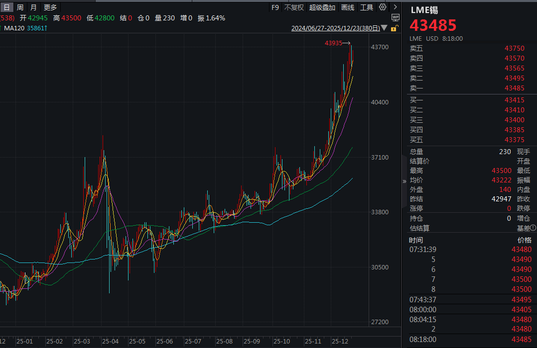 2025年12月以来,伦锡累计涨幅达到11.5%,沪锡涨幅超13%,短短半个月时间每吨锡上涨超4万元。
