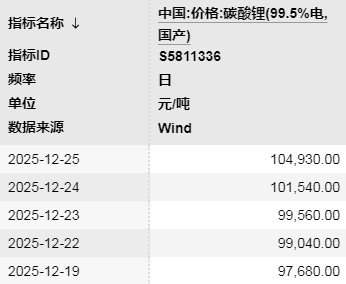 一方面,交易所层面在不断加大调控力度。24日晚间广期所宣布,自12月26日交易时起,对LC2601等合约单日开仓量进一步收紧,25日早盘部分碳酸锂期货合约跌幅也一度达到5%以上。