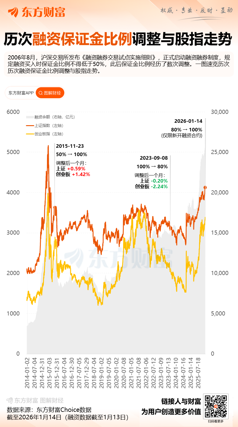 2026年1月14日,经中国证监会批准,沪深北交易所发布通知调整融资保证金比例,将投资者融资买入证券时的融资保证金最低比例从80%提高至100%。